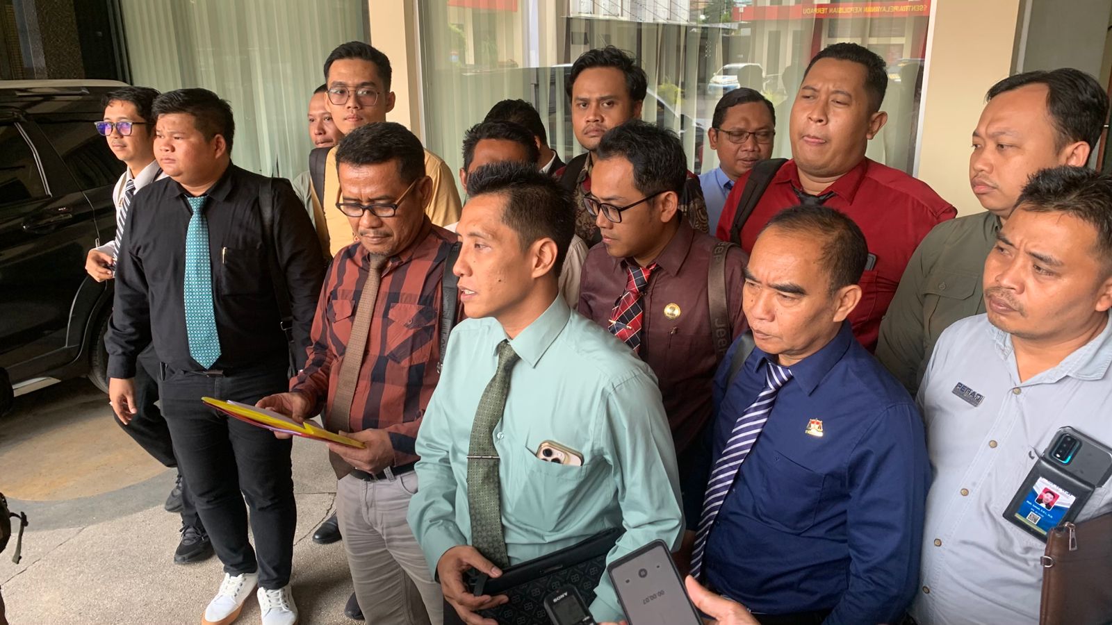 Kehadiran para advokat itu tergabung dalam Forum Kerabat Advokat (FKA), sebagai bentuk dukungan moral sekaligus pendampingan terhadap rekan sejawat mereka.