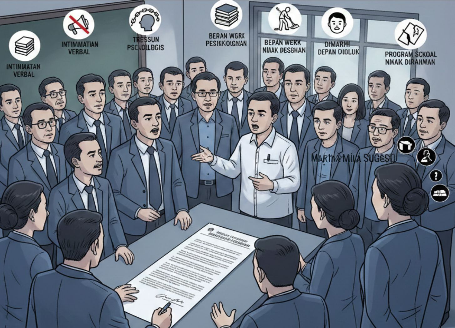 “Bu Martha sering mengancam dan memaki guru, bahkan di depan umum. Kami sepakat meminta tindakan cepat dari dinas,” ujar Ahmad.